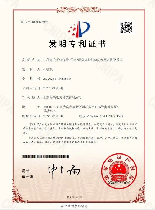喜報近日,山東海興電力在科技創(chuàng)新領(lǐng)域再獲佳績。申報的“一種電力系統(tǒng)背景下的分層分區(qū)短期負(fù)荷預(yù)測方法及系統(tǒng)”榮獲發(fā)明專利授權(quán)。此項(xiàng)創(chuàng)新成果不僅充分展現(xiàn)了山東海興電力在電力系統(tǒng)智能化領(lǐng)域的技術(shù)實(shí)力,也為公...