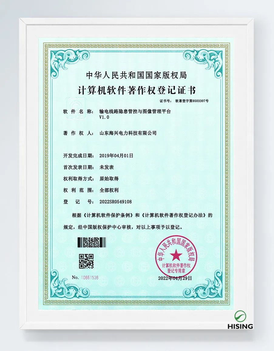 近日,經(jīng)國家版權(quán)局審核,山東海興電力科技有限公司(以下簡稱“山東海興電力”)自主研發(fā)的“輸電線路隱患管控與圖像管理平臺V1.0”軟件技術(shù)獲得國家計算機軟件著作權(quán)。