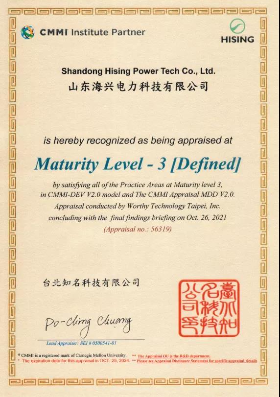 經(jīng)過嚴格、公正地評估與考核,山東海興電力科技有限公司成功獲得 CMMI L3級認證!此次認證的順利通過是山東海興在發(fā)展壯大過程中的一個重要里程碑,標志著公司在軟件設(shè)計、產(chǎn)品研發(fā)、項目管理、服務(wù)質(zhì)量等方面全面與國際標準及管理要求接軌,在為用戶提供高質(zhì)量產(chǎn)品方面達到國際先進水平。