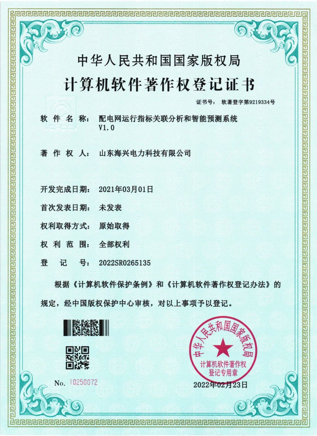 近日,由公司開發(fā)的“配電網(wǎng)運行指標關(guān)聯(lián)分析和智能預(yù)測系統(tǒng)V1.0”順利通過中國版權(quán)保護中心審核,獲得由國家版權(quán)局頒發(fā)的《計算機軟件著作權(quán)登記證書》。