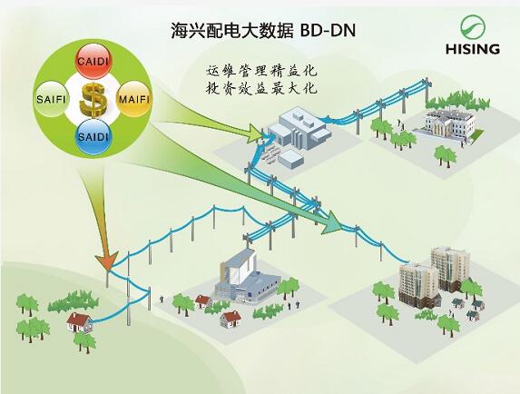BD-DN通過海興大數(shù)據(jù)分析和可視化平臺(BD-AVP)對配網(wǎng)海量數(shù)據(jù)進行深度分析和價值挖掘,找到配網(wǎng)升級改造,運行維護和服務(wù)質(zhì)量等方面的潛力所在,指出提升方向,實現(xiàn)科學決策。BD-DN以電力用戶為中心,以提高供電可靠性為目標,廣泛獲取用戶側(cè)運行數(shù)據(jù)和反饋信息,反向溯源;從電力用戶的關(guān)切點和滿意度出發(fā),采用國際領(lǐng)先的新技術(shù)和新理念,達到配電網(wǎng)運維管理精益化、服務(wù)工作規(guī)范化、投資效益最大化。