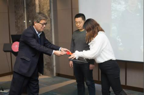 ▲王總為9名愛崗敬業(yè)獎獲得者頒獎