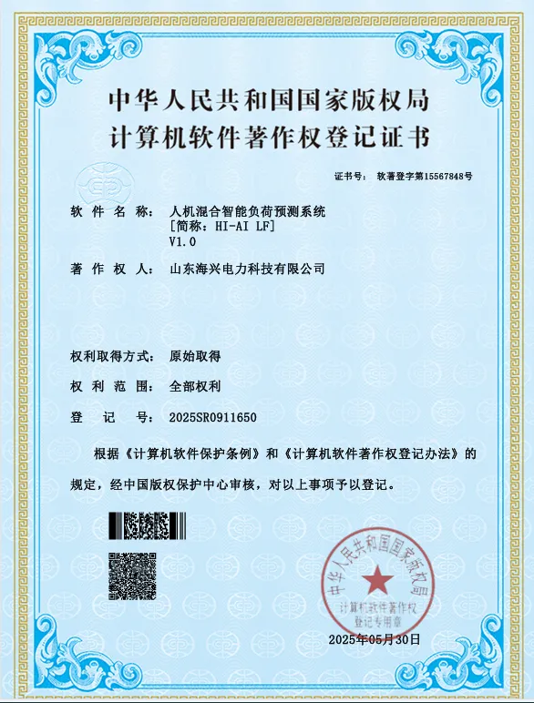 在新型電力系統(tǒng)加速建設(shè)的今天,地區(qū)(市)級負荷預(yù)測仍深陷“人工經(jīng)驗主導(dǎo)”的困局——響應(yīng)慢、誤差高、難適配新能源波動,成為電網(wǎng)安全運行的隱憂。山東海興電力以技術(shù)革新破局,自主研發(fā)的人機混合智能負荷預(yù)測系統(tǒng)(HI-AI LF)正式獲得國家軟件著作權(quán),為地區(qū)(市)電網(wǎng)調(diào)度注入“人工智能+專家經(jīng)驗”雙核動力!